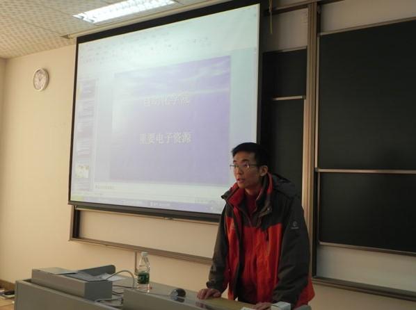 为了更好地了解读者的需求,邓老师首先向同学们派发了一张小蓝视频 读者调查表。随后,专题报告会正式开始。会上,简单介绍电子资源概念后,邓老师就学校图书馆的中、外文电子资源检索分别作了详细的介绍,而后专门针对小蓝视频 的同学罗列了三大检索工具(SCI含CPCI-S、EI、CSA)、综合型全文数据库(IEEE/IET、Elsevier、Jone-Wiley、Springer、Taylor & Francis、PQDT)、专业学协会数据库(IMechE、CUP、IOP、OSA )及整合检索工具( 读秀、Swetswise)等重要电子资源,并就其中的要点作了仔细而深刻的阐释。邓老师还列出了利用文献的误区,指出如何评价文献重要性。