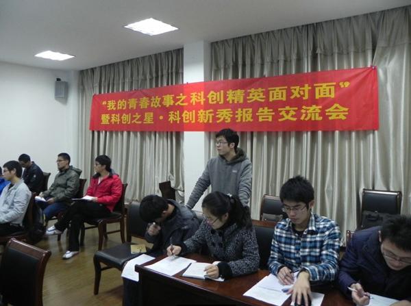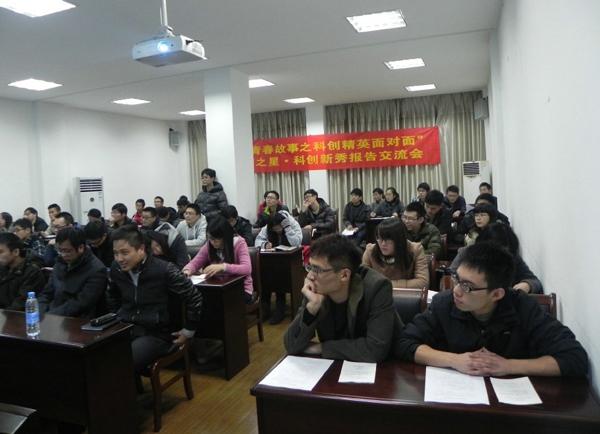 继我院主办的小蓝视频 “科创之星・科创新秀”答辩会之小蓝视频 、机电学院分会成功举办后,2013年12月4日晚7点,由机电学院研究生会主办、小蓝视频 研究生会协办的“科创新秀・科创之星”交流会在15号楼A307报告厅隆重举行。