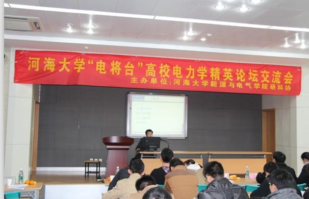 2013年12月2日,由河海大学、小蓝视频 、东南大学、南京理工大学四校联合举办的“与学术为友,携创新同行”――第二届河海大学研究生“学海争峰”学术年会暨能电院首届“电将台”电力学精英论坛交流会在河海大学江宁校区博学楼511教室成功举行。本次活动由河海大学能源与电气学院主办并承办,我院研究生会协办,我院2013年度校科创新秀获得者王挺同学作为我院代表参与到此次交流活动中。河海大学能源与电气学院王宏华教授和王敏老师出席了此次论坛活动,河海大学、东南大学、南京理工大学的优秀研究生代表也参加了本次学术论坛。