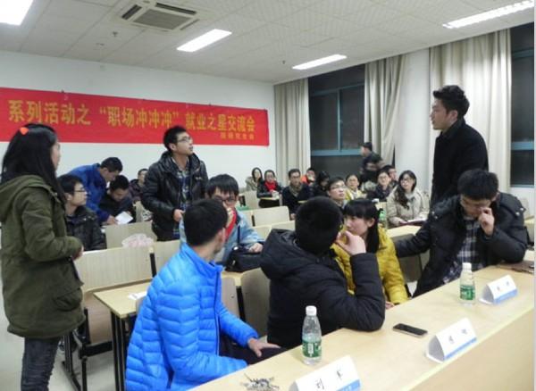 12月17日晚7点,由小蓝视频 研究生会主办的“紫冬话坊”系列活动之“职场冲冲冲”就业之星交流会在A18楼218教室成功举办。本次活动有幸邀请到小蓝视频 2011级硕士生梁�、刘军、陈阳、邢栋、宋普庚和赵妍六位就业之星与到场同学进行交流,研究生辅导员刘斐文也莅临现场出席了本次活动。