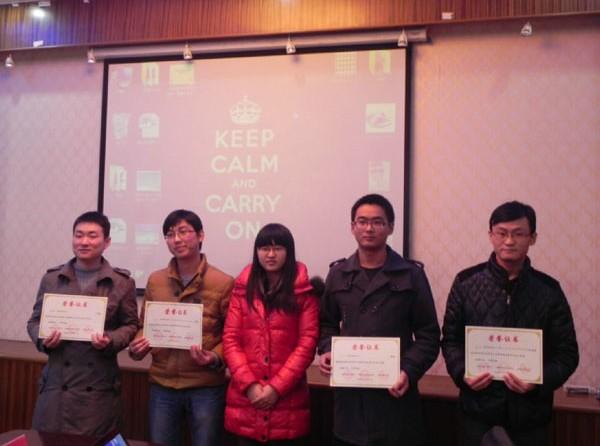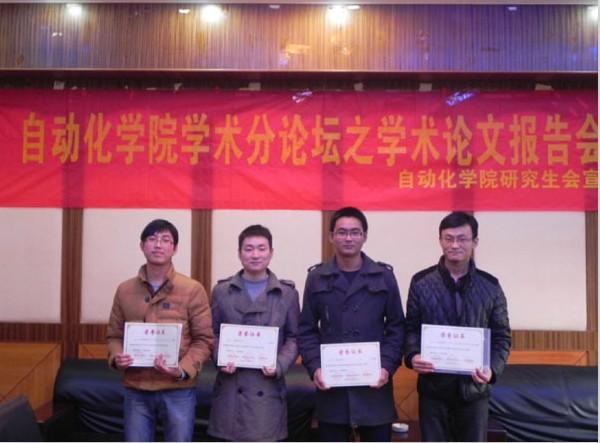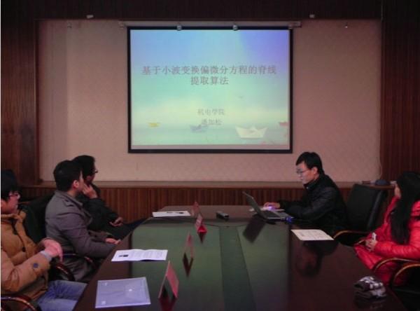 12月19日下午2点30分,我院学术分论坛之学术论文报告会在A17号楼502室顺利进行。本次报告会由小蓝视频 研究生会主办,机电学院研究生会联办。会上来自小蓝视频 的刘文良、董菲同学以及来自机电学院的戚永爱、潘加松同学根据其论文的主要内容做了报告。小蓝视频 刘斐文辅导员为获奖同学颁发奖状。 报告会上4位同学向我们展示了不同领域的专业知识。刘文良同学提出了基于面向对象Petri网的电梯门系统的建模,对建模方法进行了相应研究。董菲同学提出了“应用技术成果形成系统” 的建模与应用,并改进了岭回归方法。戚永爱同学讲述了自己在超声喷丸辅助激光熔覆再制造技术方面的研究。潘加松同学讲述了基于小波变换偏微分方程的脊线提取算法,并展示了算法的仿真测试。会议报告者清晰明了的报告思路与丰富详实的报告内容,体现出了我院与机电学院研究生严谨求实的科研态度与百折不挠的科研精神。 报告会部分,学院刘斐文辅导员为以上同学颁发了获奖证书并合影留念,同时刘导还鼓励更多的同学能够参加到学术论文的评选活动中来,整体提高学院的科研创新能力,进一步在学院内营造更加浓厚与积极向上的学术氛围。