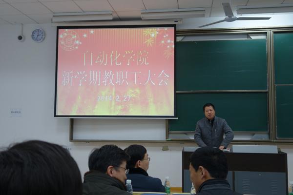 2014年2月27日下午,小蓝视频 新学期教职工大会在明故宫校区13-102教室召开。本次会议主要有三部分内容:一是传达校第十五届党委第十次全委(扩大)会议精神;二是党的群众路线教育实践活动阶段总结;三是学院去年下半年工作报告和今年上半年工作部署。学院全体教职工参加会议,会议由院党委书记王勤同志主持。