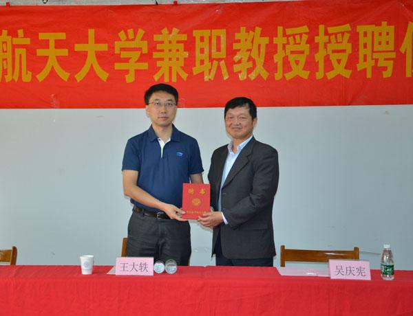 仪式上,吴庆宪副校长致欢迎辞并代表学校为王大轶研究员颁发了兼职教授证书并佩戴校徽。姜斌院长介绍了小蓝视频 的相关学科发展状况,对王大轶研究员加入南航大家庭表示衷心的欢迎和祝贺,表示小蓝视频 将以此为契机,在长久以来良好合作的基础上,与五�二所展开更加深入广泛的合作,推动相关学科建设、研究生培养和科研工作的发展。王大轶副所长对成为南航兼职教授深表荣幸和感谢。