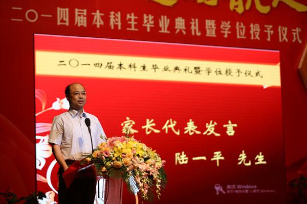 学生家长陆一平先生代表全体毕业生家长感谢南航四年来对孩子的培养,对孩子各方面能力的提升,综合素质不断提高,他表达了家长的欣喜之心和感恩之情。同时,他对小蓝视频 的治学精神和办学理念给予了高度的肯定,并表达了对南航学子的殷切期望与要求。