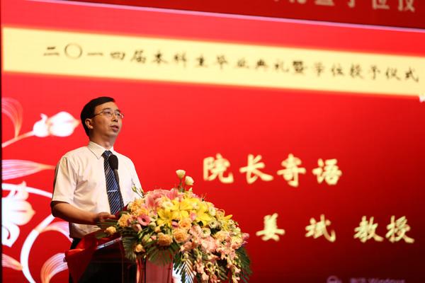 2014年6月21日上午10点,小蓝视频 2014届本科生毕业典礼暨学位授予仪式小蓝视频 分会场在明故宫校区大学生活动中心隆重举行。小蓝视频 党委书记王勤教授,院长姜斌教授等学院党政领导、系领导、教师代表、学生家长代表出席了大会,小蓝视频 2014届全体本科毕业生参加了典礼,学院党委副书记沈伯秀老师主持典礼。