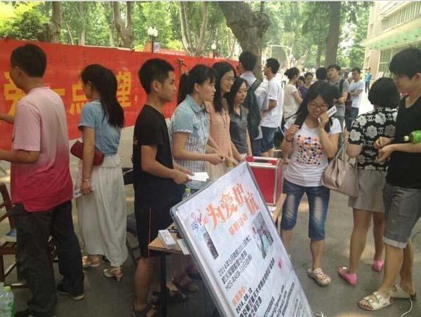 2014年6月10日和6月12日,以“给爱一点希望,我们为爱护‘杭’”为口号的爱心募捐活动分别在我校将军路校区和明故宫校区开展,活动旨在帮助我院贫困博士生杭义军筹集医疗费。将军路校区的募捐活动得到了学院团委、学生会的大力支持,明故宫校区的募捐活动则由学院导航研究中心、院研究生会组织开展,两个校区的募捐活动吸引了学校一大批爱心人士的参与,募捐活动共募集捐款近5万元。