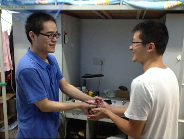 时临中秋佳节,为使班级同学度过一个幸福圆满的中秋节,9月8日,小蓝视频 13级研究生5班爱心小分队在该班书记和班长的带领下,来到班级学生的实验室和宿舍,为大家送上月饼,使大家感受到了浓浓的过节氛围。