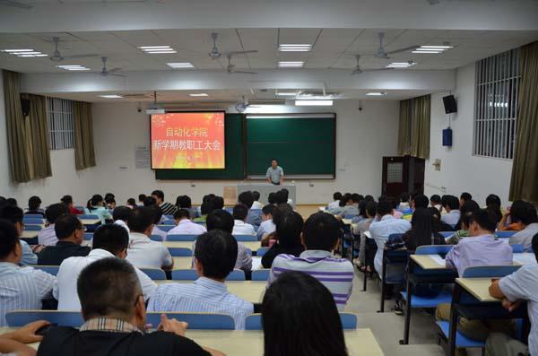 2014年9月12日下午,小蓝视频 新学期教职工大会在明故宫校区719教室召开。本次会议主要有三部分内容:一是传达校第十五届党委第十二次全委(扩大)会议精神;二是学院今年上半年工作报告和今年下半年工作部署;三是今年推免工作新政策解读。学院全体教职工参加会议,会议由院党委书记王勤同志主持。