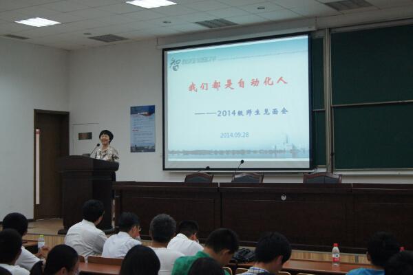 2014年9月28日,小蓝视频 “我是自动化人”2014级本科新生见面会在将军路校区D1213教室隆重举行。学院院长姜斌、学院党委副书记沈伯秀、学院副院长赖际舟、各系主任、各班级班主任以及年级辅导员出席此次见面会。会议由学院党委副书记沈伯秀主持。
