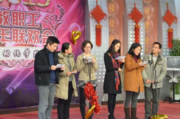 联欢会在一片欢歌笑语、祥和的氛围中结束。在2015年元旦到来之际,本次联欢会不但丰富了学院教职工业余生活,也给学院藏龙卧虎、多才多艺的教职工们提供了展示的舞台,增强了全院教职工的凝聚力!