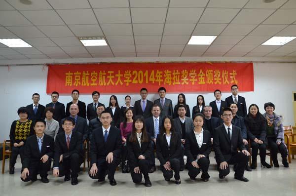 2015年1月6日上午,小蓝视频 2014年海拉奖学金颁奖仪式在明故宫校区智能楼四楼报告厅举行。参加此次颁奖典礼的嘉宾有海拉亚太区人力资源执行副总裁兼中国区总部副总经理管莉女士、中国区灯具业务TtM高级副总裁Dr. Frank Huber、中国区灯具事业部研发总监Chris Kirchenbauer先生、海拉电子南京研发中心项目管理总监Peter G. Dieh先生、海拉亚太区组织发展人力资源总监宁晓婷女士、海拉南京研发中心人力资源经理刘帆女士、小蓝视频 院长姜斌教授、校研究生院副院长孙占久老师,航天学院党委书记季海群老师,机电学院党委副书记许赞老师。本次颁奖仪式由小蓝视频 党委副书记沈伯秀老师主持。