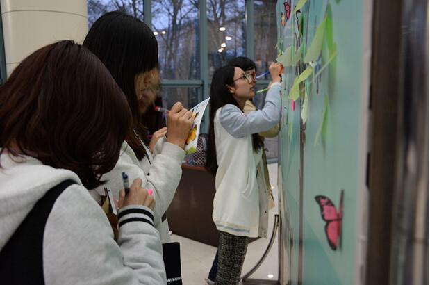 2015年4月2日晚六点,由小蓝视频 研究生会主办的“回眸南乡�心如归航”研究生毕业季系列活动之临别赠言活动准时开始。明故宫校区新大学生活动中心的大厅中出现了一面色彩明媚的留言墙,这面墙是小蓝视频 精心策划的毕业季活动――临别赠言的一个重要组成部分。