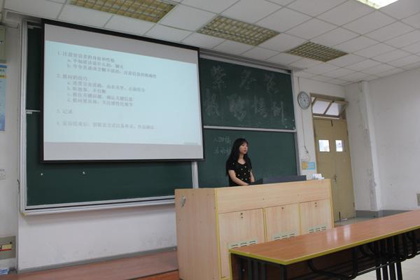 5月27日,校记者团记者徐妍钰、王快快围绕如何进行实践活动宣传以及新闻稿的撰写两个方面对小蓝视频 2014级年级干部展开技能培训。