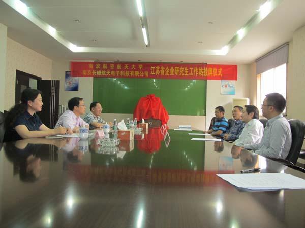 2015年05月25日,小蓝视频 赖际舟副院长与企业联系导师盛守照教授学院教学办主任一起来到南京长峰航天电子科技有限公司,为南航大与长峰航天共建江苏省研究生工作站揭牌。长峰公司副总经理陆晓路、技术质量部主任李永明部出席仪式,仪式由总经理助理钱宇光主持。