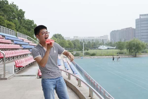 纸飞机大赛坚持公平公正公开的原则,以飞机滞空时间以及飞行距离两大标准作为评判依据。比赛以寝室为单位,每个寝室有三次飞行机会,战机与飞行员均没有限制,现场工作人员分为评判组、解说组、摄影组以及引导组。炎热的天气与火辣的太阳并没有减退大家的热情,小伙伴们带着自己的纸飞机大作,于下午一点准时来到了比赛场地。在欢快的儿歌声中比赛正式开始,纸飞机飞行员们拿出自己的飞机,哈口气,起飞,动作一气呵成,有的纸飞机刚起飞就重重地往地上栽去;有的纸飞机在空中盘旋一周后竟然在往后飞,导致飞行距离为零,引起了在场观众的一片笑声;有的纸飞机造型完美;有的纸飞机设计者完美遵循了空气动力学原理,纸飞机飞得又高又远,在空中滑翔了近20秒才平稳着陆,赢得了阵阵喝彩。四十个寝室陆续完成了比赛,最终十一个寝室分别夺得了此次比赛的特,一,二,三等奖,并获得了各自的航模奖品,同时戚耀文同学的飞机一举拿下最具创意奖的头衔。