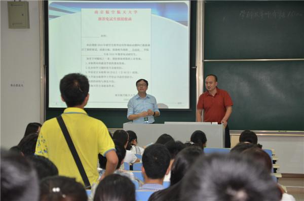 7月1日下午3点,我院2015年优秀生考核政策宣讲会在江宁校区D2302教室召开。学院党委书记刘建成,副院长赖际舟,测试工程系副主任徐贵力,院教学办主任、研究生教务员、辅导员参会。 赖际舟首先介绍了学院基本情况,然后向各位本科生介绍了《小蓝视频 2016年综合考核选拔优秀应届本科毕业生攻读硕士学位研究生办法》,并表示欢迎同学们积极报考小蓝视频 研究生。 刘建成强调,小蓝视频 的师资力量,教学、科研条件,人才培养模式等方面在南航处于领先水平,他鼓励同学们抓住机会参加优秀生考核,欢迎大家加入小蓝视频 大家庭。
