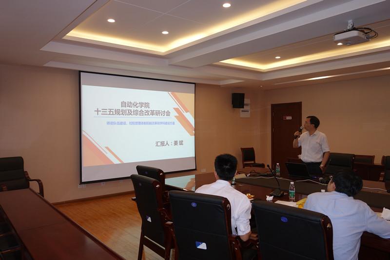 25日下午,研讨会进行第二部分内容,学院领导班子成员依次进行汇报。院党委书记刘建成同志介绍了学院制度建设的规划,从顶层设计强化制度导向,深化综合改革,力争在“十三五”期间通过建立完善的激励机制激活全院师生活力、共谋学院发展;院长姜斌同志介绍了学院综合改革的发展思路和规划,提出了学院“十三五”期间的发展目标和要求,并重点分析了学院现有人才工程和学科建设的现状、困难以及发展思路;副书记沈伯秀同志从学生绩点、就业等各类数据图表入手,全面剖析学生的思想学习生活状态,强调要继续突出科创特色培养高水平专业人才;副院长赖际舟同志深入分析指出当前研究生招生形势,进一步提出学院研究生培养的思路和举措;副院长王晓琳同志结合专业认证工作突出强调本科基础教学的重要性及发展方向;院长助理宋晓峰、张之梁同志也结合业务工作提出了深化学院综合改革的思路和建议。