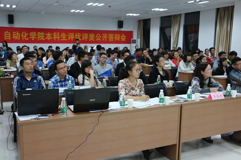 10月8日晚,我院本科生2014-2015年度院级评优评奖公开答辩会在将军路校区小蓝视频 1号楼303、403和511会议室分三组进行。学院教学副院长王晓琳老师,党委副书记沈伯秀老师,院长助理张之梁教授,院长助理宋晓峰教授,12、13、14级班主任代表,各年级辅导员和学院机关老师等参加了此次答辩会并担任评委。