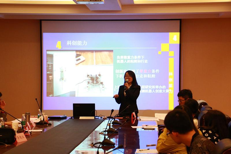 为确保评奖的公平与公正,本次答辩评审采用交叉评审制度,即班主任、辅导员以及学生评委按照回避本年级学生的原则安排分组,答辩形式为公开答辩,共分为自我展示、评委提问和现场评分3个环节。答辩选手就个人基本情况、专业学习、科技创新、社会工作等多方面进行个人陈述,他们之中有成绩名列前茅,且获得多项科研奖项的学术达人、有出国交流学习过,具有国际视野的一流人才、有参加校园内外多项文艺活动,活跃在舞台上的工科学子。评委老师也非常认真,问题切中要害,寓意深刻,有问创新思维的,有问具体科研方案的,有问活动感悟的,选手们的与评委老师的精彩互动赢得台下阵阵掌声。
