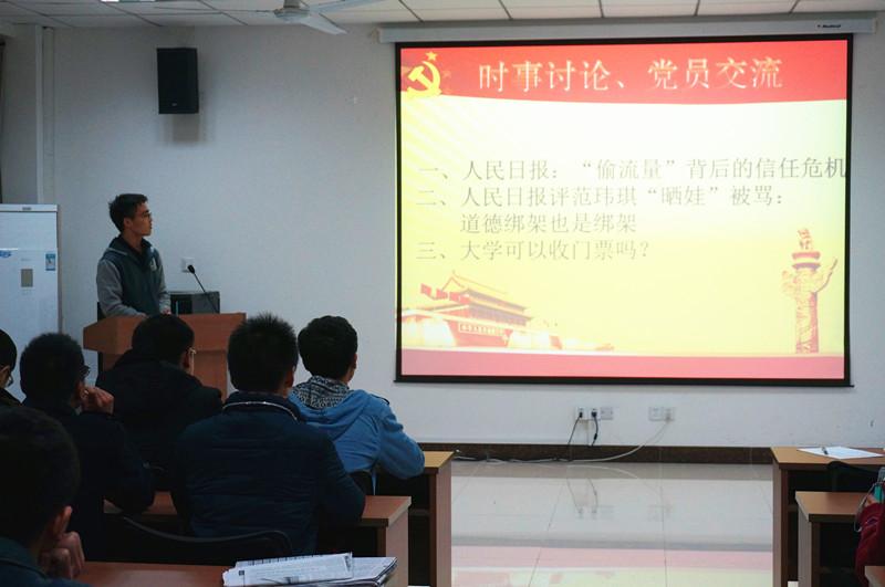 2015年12月1日,小蓝视频 本科2013级第二党支部在自动化院楼303报告厅举行本学期的第一次党员沙龙。由于大三学生学习压力较大,空余时间少,本学期的党员沙龙将原有的电影推荐、好书推荐、时事点评三个模块浓缩为时事讨论模块;沙龙举办的意义也有所改变,除了党员同志们交流思想外,邀请了年级入党积极分子参与讨论,以此加强对入党积极分子的日常考核。