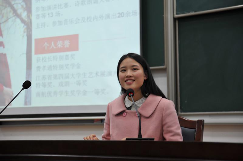 宣讲环节中,首先是颜晔同学进行了以“读万卷书,行万里路”为主题的宣讲。颜晔大一、大二学年GPA均列专业第一,多次获得科创竞赛奖项,他从学业成绩、学科项目、科创比赛、创新项目、梦想启航五个方面向学弟学妹们分享了他眼中的大学之学。他说:“大学之大,不在于大,而在于学。”接下来,是曾担任小蓝视频 校学生会主席的尤一伟同学讲述了他大学里与学生工作相伴的成长故事,他特别强调做学生工作应怀有一颗纯粹的心,不为名、不为利,只要在工作的过程中能够锻炼提高自己的能力就是最大的收获。接着,由百花奖得主孙林楠同学上台分享了她的追寻艺术之路,并针对如何协调学业和兴趣的关系问题提出了宝贵的建议,使两者相互促进,互为灵感。最后,在前不久刚结束的第十四届“挑战杯”全国大学生课外学术科技作品竞赛中获得全国特等奖的尹彦卿同学分享他的科创经验。他语言风趣,从科创体验、所需知识、常见竞赛分类等方面让同学们切实地对科创有了进一步的了解。