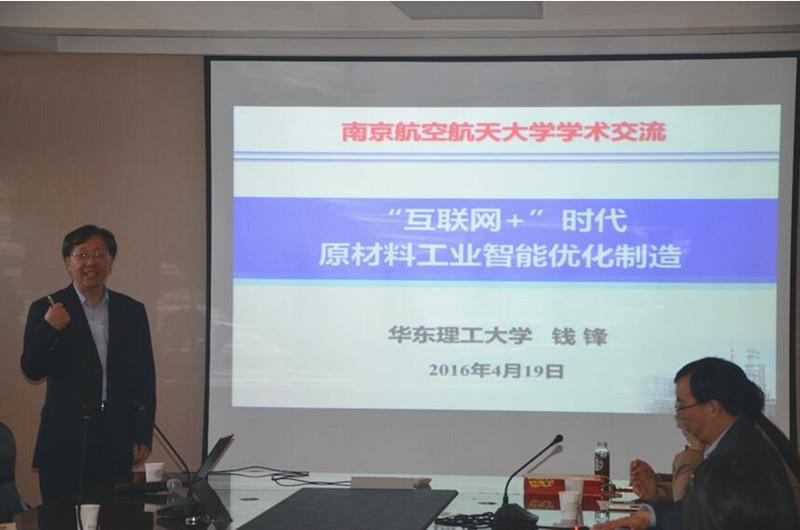 4月19日上午,中国工程院院士、华东理工大学副校长钱锋教授应邀访问南航小蓝视频 ,做题为“‘互联网+’时代原材料工业智能优化制造”的南航“问天”科学讲坛第90场学术报告。报告会由小蓝视频 院长姜斌教授主持,小蓝视频 近百名师生聆听了报告会。