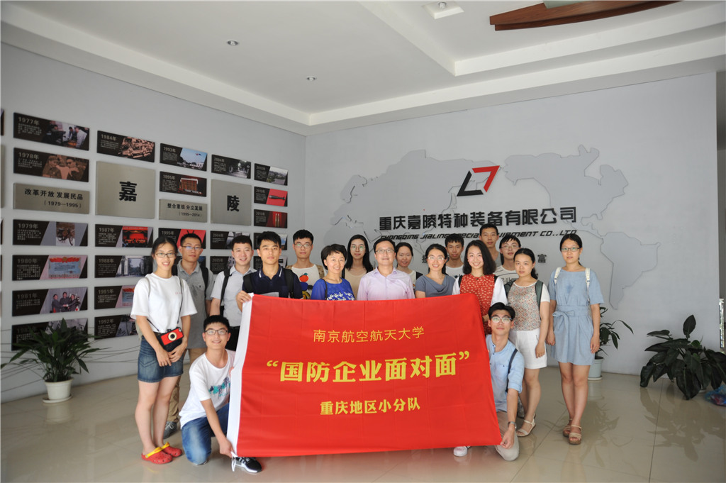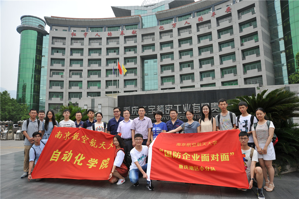 7月13日至14日,小蓝视频 2016年“国防企业面对面”实践团前往重庆地区,走访重庆红宇精密工业有限责任公司、重庆嘉陵特种装备有限公司、中国电子科技集团重庆声光电有限公司(中国电子科技集团第24、26、44研究所)等国防企业。实践团由学院副院长赖际舟和党委副书记沈伯秀带队,成员包括院团委书记季娟、各年级辅导员以及10名各学院学生代表。此外,一同参与走访的还有校就业指导服务中心的老师代表。