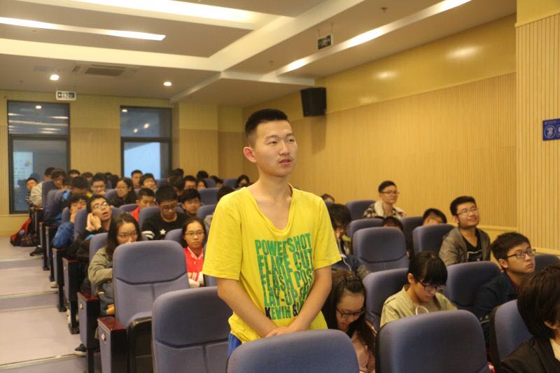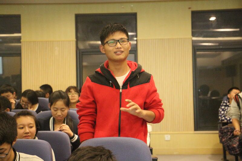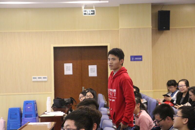 郭建雄老师先由国内外错综复杂的国际形势,引入介绍了文化复兴背景下的国学经典智慧,以对“人”这个词的理解,强调了人性内部物质与精神并重的特质,并认真倾听了在场同学对其他汉字精神内涵的理解,同时阐述了自己对汉字所代表的人生道理的理解,赢得了在场同学的热烈掌声。