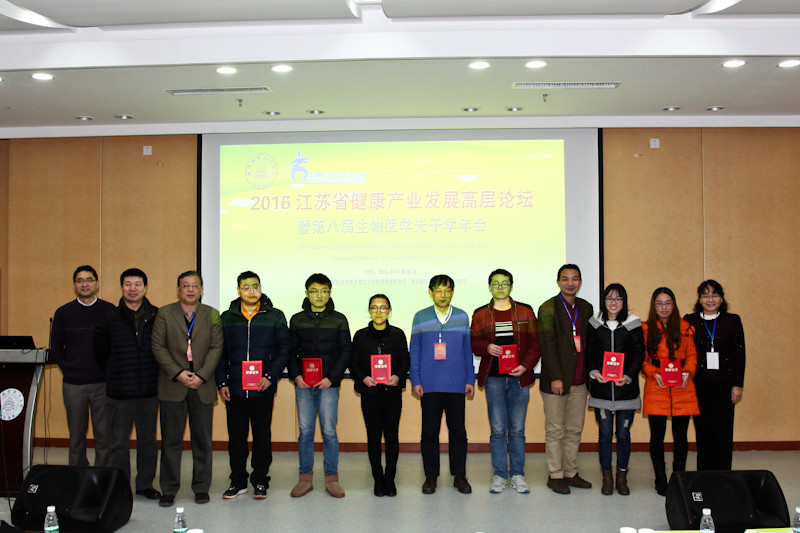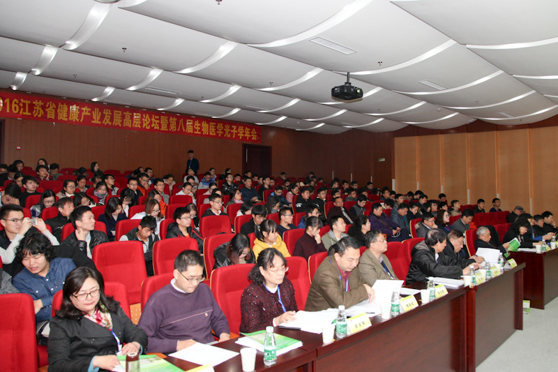 2016江苏省健康产业发展高层论坛暨第八届生物医学光子学年会于2016年11月26日在小蓝视频 将军路校区图书馆报告厅胜利召开。本次会议由江苏省生物医学工程学会、江苏省生物医学光子专业委员会主办,小蓝视频 生物医学工程系承办,中国电子学会生命电子学分会等4家单位协办。出席本次会议的领导及专家学者来自江苏省科技厅社会发展处、江苏省科协、扬州健康产业园、中科院苏州医工所、泽熙投资、江苏汉棠健康产业发展有限公司等多家企事业单位。