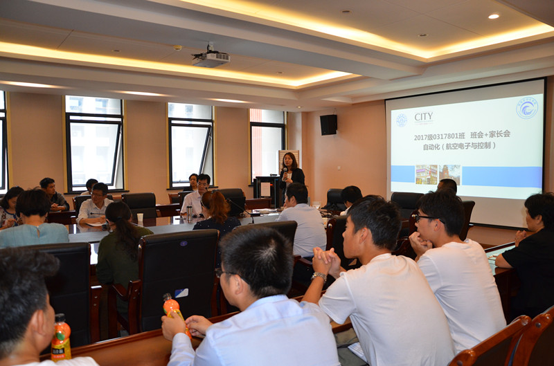 9月29日下午,2017级0317801班班会与家长会在小蓝视频 1号楼403会议室顺利召开。自动化(航空电子与控制)专业是小蓝视频 为了培养具有国际化视野并掌握航空电子与控制技术的高素质人才,与英国伦敦城市大学合作引进的联合办学项目。学生在小蓝视频 自动化(航空电子与控制)专业学习两年后在第三、四年赴伦敦城市大学学习,完成所要求的全部课程后将获得中英双学士学位。为了让学生和家长了解项目详细情况,知晓具体政策,学院特意组织学生和家长共同参加会议,教务处副处长王敬东、小蓝视频 副院长王晓琳、学院党委副书记张跃,自动控制系副主任张绍杰、教师代表刘海春老师、国教院辅导员张静、学院教务员郑成、学院辅导员汤呈懿等人出席了本次会议,本次班会与家长会由班主任齐瑞云教授主持。