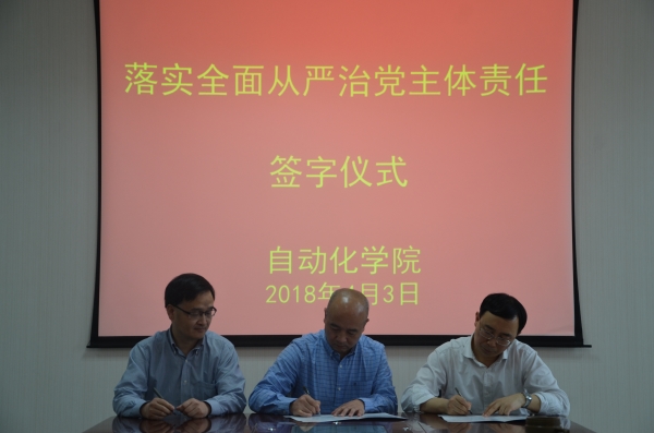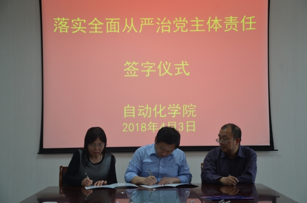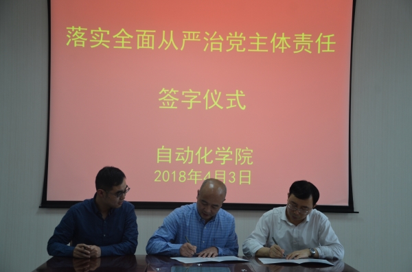为学习贯彻党的十九大、校第十六次党代会精神和学校全面从严治党决策部署工作会议精神,按照关于落实全面从严治党主体责任要求,扎实推进学院全面从严治党、党风廉政建设和反腐败斗争向纵深发展,层层压紧压实全面从严治党主体责任,小蓝视频 于2018年4月3日,在学院一号楼405会议室举行落实全面从严治党主体责任的责任书签订仪式。学院全体党政领导、院长助理及各基层单位党支部书记、系主任参加了会议,会议由学院党委书记刘建成主持。