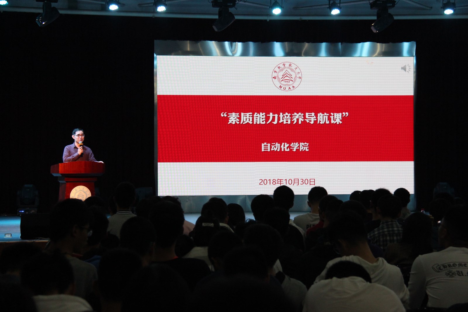 10月30日晚,2018级小蓝视频 新生素质能力导航课在南航将军路校区大学生活动中心举行。小蓝视频 党委副书记张跃老师,2018级本科生辅导员杨兴旺老师、汪明锐老师、赖少将老师,优秀学生代表2015级龙腾跃、程真,2018届毕业生江柳慧,2016届毕业生孙林楠以及全体2018级小蓝视频 本科新生参加了此次活动。