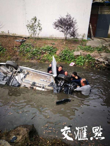 看着高宇兄弟俩跳进河里,周围的几个村民也跳进河里帮忙。大家齐心协力拿绳子捆着轮胎,把汽车翻过来,将车里的两名男子救了出来,此时他已在冰冷的河水里泡了半个多小时。“翻车的是一家三口。开车的是妻子,听说刚拿驾照没多久,操作失误,车开到河里去了。我们一起救上来的是丈夫和儿子。后来有村民报警,救护车、警察都来了,妻子救上来时已陷入昏迷,被送到医院后还是没救过来。”高宇告诉交汇点记者。