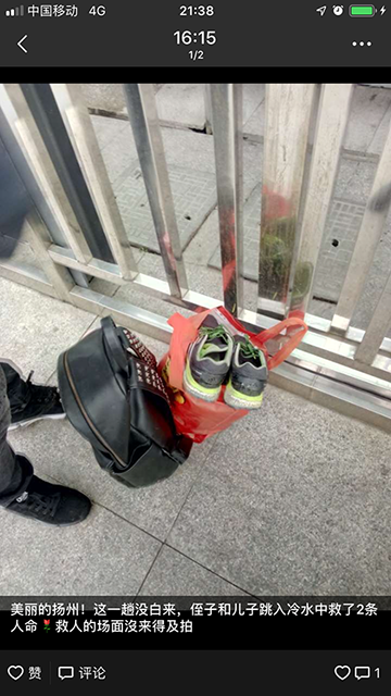“儿子知道我把这件事发了朋友圈,一个劲抱怨我 ‘妈妈,你怎么搞得大家都知道了,不要发啦!’”周女士自豪地说,儿子和侄子的行为让她特别骄傲,都是好样的!朋友圈里的照片也是当时村里其他人拍了发给她的,“我们当时在救人,根本顾不上拍照拍视频。救人也不是图什么回报,发朋友圈就是想夸夸两个小伙子!”