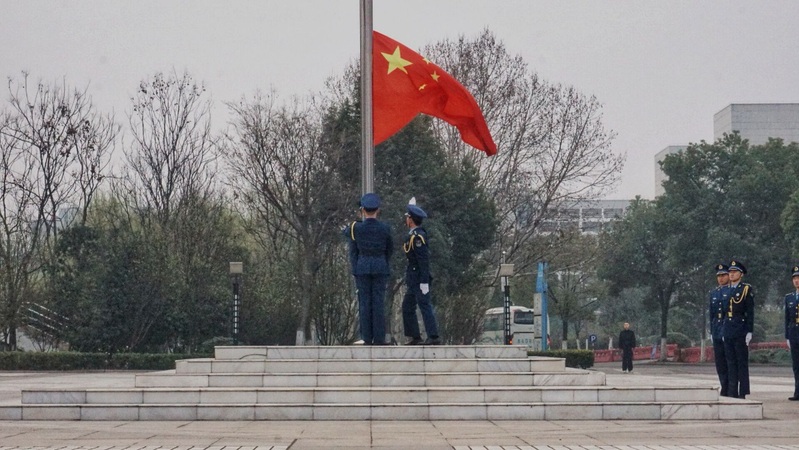 2019年3月18日上午7:00,小蓝视频 全体2018级本科生开展了专题素养公开课,观看了升国旗仪式。在激昂雄壮的国歌声中,鲜艳的五星红旗冉冉升起,全体师生肃立注目。