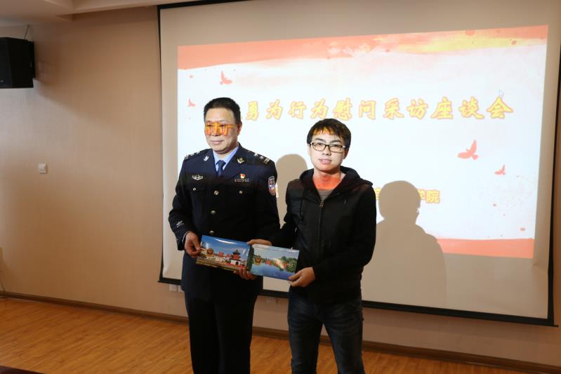 邬益军部长首先介绍了事件的基本情况,在座的老师和同学都不禁为高宇的英勇行为鼓掌。广陵区头桥镇党委副书记童兵和广陵区见义勇为基金会单荣海主任分别向南航小蓝视频 递送表扬信,并向高宇同学赠送鲜花和慰问金。高宇同学随后表示,自己只是一个普通人,做了一件普通事,任何一个人遇到这样的情况都会挺身而出提供帮助。他觉得获得这个奖是对他的肯定也是对他的一种鞭策和激励,之后他会更加努力的完善自己,帮助他人。