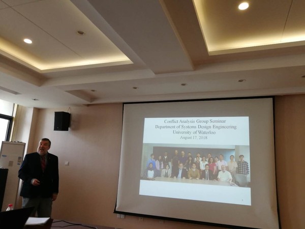 而后,Hipel教授讲解了他在水环境研究方面所做的主要工作。Hipel教授针对矛盾冲突该如何解决的问题详细的阐述了冲突分析图模型(GMCR)。冲突分析图模型是在经典对策论和偏对策理论基础上发展起来的一种对冲突行为进行正规分析的决策分析方法。Hipel教授对冲突分析图模型的介绍主要集中在五个方面:偏好信息、稳定性概念、稳定后分析、应用研究及其未来展望。充分论述了冲突分析图模型在解决社会热点冲突问题具有重要的实际应用价值。