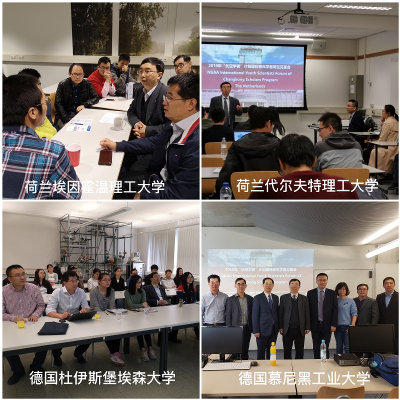 代表团一行访问了德国慕尼黑工业大学、德国杜伊斯堡埃森大学、荷兰代尔夫特理工大学、荷兰埃因霍温理工大学,并分别在四所高校召开了“长空学者”青年科学家论坛—德国、荷兰分论坛暨高端人才见面会。会上,我校人事处副处长卜建介绍了学校的概况,重点介绍了各类人才引聘政策,对高层次人才、常规师资、博士后、专职科研人员在南航的未来发展政策进行了解读。小蓝视频 副院长王晓琳、党委副书记张跃分别介绍了学院的师资队伍、学科建设、教学科研等情况,让参会者能够全面了解学院的情况,并对将来期望回国发展的青年博士、博士后人员给出了切合实际、具体可行的建设性意见。副校长姜斌结合自己到南航工作的体会以及在海外留学工作的亲身经历,给与会的青年人才进行了分享,并给大家着重介绍学校重视人才的诚意、引进人才的魄力、良好的发展平台,热忱欢迎青年才俊到南航发展。分论坛的圆满举办成功拓展了我校海外高层次人才引进渠道,增强了我校引才聚才的宣传力度,将进一步推动我校高水平师资队伍建设。