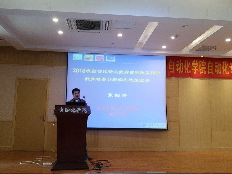 5月22日下午4点,小蓝视频 在小蓝视频 1号楼511报告厅举办自动化专业“卓越计划”选拔宣讲会,本次宣讲会由自动控制系副主任张绍杰老师为同学们介绍自动化专业“卓越计划”,同时120余名2018级自动化专业本科生也参加了宣讲会。