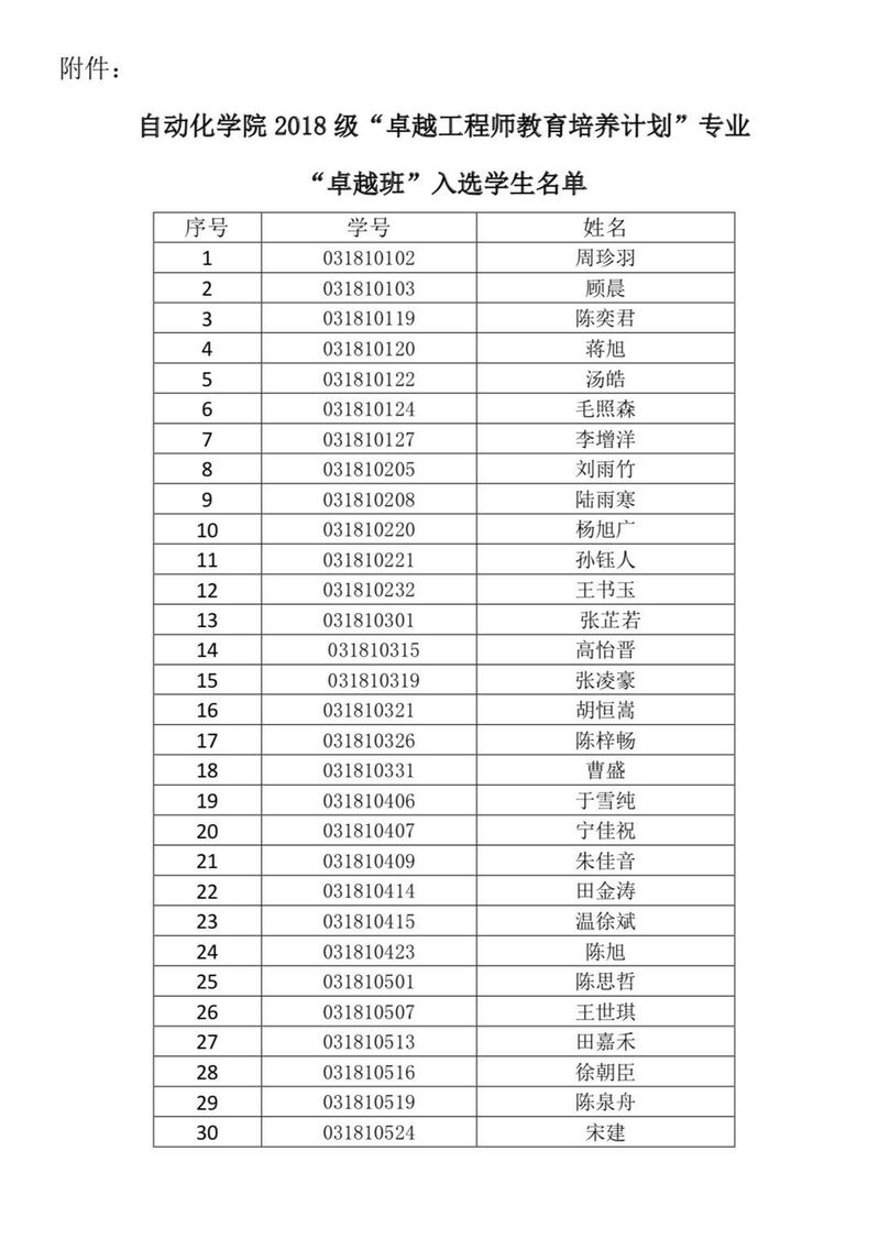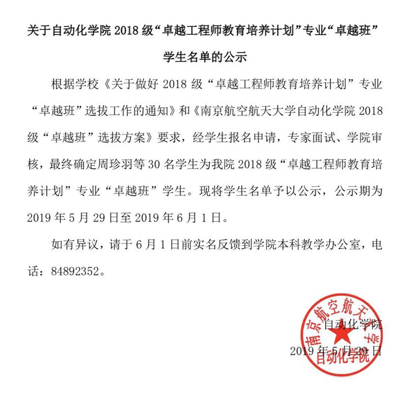 关于小蓝视频 2018级“卓越工程师教育培养计划”专业“卓越班”学生名单的公示