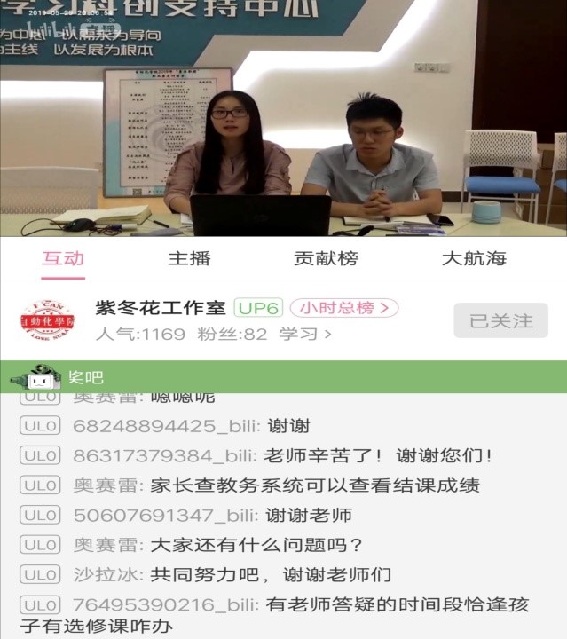 为了进一步促进家校沟通,形成教育合力,促进学生学业水平和综合素质的提高,2019年5月29日18:30小蓝视频 2018级以视频直播的形式召开了线上家长会。结合大一下学期的特点、学生前半学期的学习情况等,辅导员杨兴旺、汪明锐为家长做了详细的介绍,并分层分类地提出相应建议。此次会议在线观看人次达到1169。