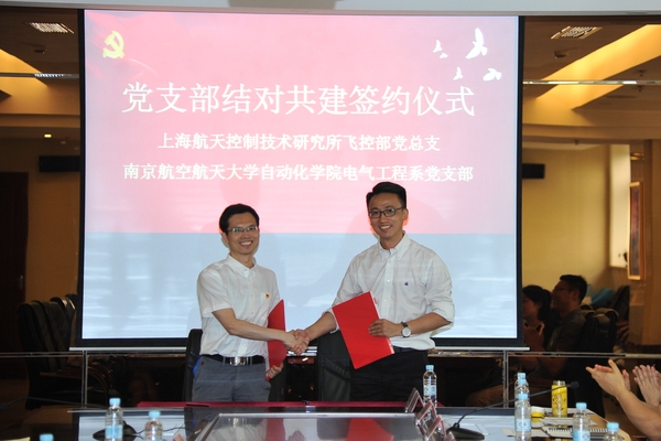 13日上午,小蓝视频 一行来到上海航天803所参观交流进行支部共建, 803所副所长杨海容首先致欢迎词,表达了对我院的热烈欢迎以及对双方前期实现的阶段性成果的肯定。科研生产部副部长、支部书记刘莎介绍了前期签署共建协议后形成的实验室共建、科研合作协议等诸多成果。随后,学院机关支部书记王俊彦、电气工程系支部书记魏佳丹、803所飞控部党总支书记、副部长蔡权林分别就所在支部的党建与业务密切联系的工作情况进行介绍。陈复扬教授做了所属领域的技术报告。随后,803所飞控部党支部和小蓝视频 电气工程系党支部签署了支部共建协议。最后,刘建成书记对803所去年7月与小蓝视频 开始支部共建、推进科研合作等表示感谢,并表示通过进一步共建交流,充分发挥党员先锋模范作用,推动科技创新、输送优秀人才,更好地为祖国航天事业贡献力量。