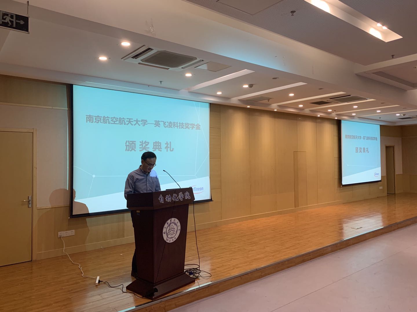 仪式初始,由学院副院长宋晓峰为此次颁奖礼做开幕致辞。宋晓峰教授首先向英飞凌科技股份公司的各位领导表示热烈的欢迎,同时向参加本次奖学金颁奖仪式的领导和老师表示衷心的感谢。宋晓峰教授指出,英飞凌奖学金的建立,对完善我院人才培养的激励机制、提升科研水平和学科建设起到了促进作用,期望在此基础上,与企业进一步加强合作,共同为国家培养更多优秀的人才。