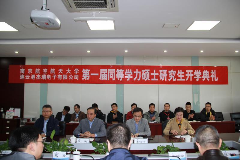 2019年10月26日上午9时,小蓝视频 -连云港杰瑞电子有限公司第一届同等学力硕士班开班典礼在连云港716所杰瑞电子公司报告厅隆重举行。小蓝视频 院长江驹、副院长宋晓峰、教学办主任王俊彦以及理学院副院长王正盛,合作培养单位中船重工第七一六研究所人力资源部副主任戴竞、连云港杰瑞电子有限公司总经理颜耀、副总经理黄新吉、沈辉焱,连云港杰瑞自动化公司副总经理、党总支书记刘志成及多位部门经理、全体即将入学的研究生出席本次典礼。典礼由黄新吉副总经理主持。