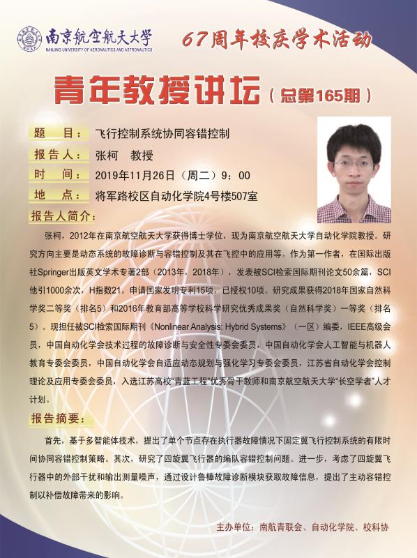 学术报告:飞行控制系统协同容错控制