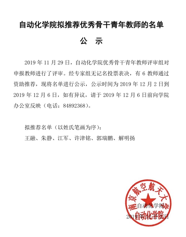 小蓝视频 拟推荐优秀骨干青年教师的名单公示