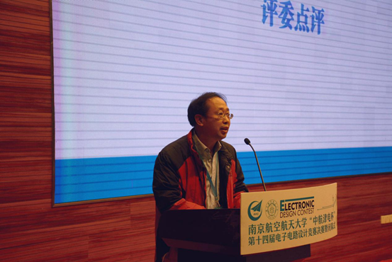获得全国电赛一等奖的小蓝视频 17级本科生李彦辉同学分享了通过比赛收获的一些经验和感悟,他说:一个优秀的团队需要统筹协调和有效沟通,面对比赛每个队员都要保持好心态,才能不惧挑战,不畏困难。随后,南航小蓝视频 电工技术中心周翟和老师对本次大赛的作品做出了点评,并充分肯定了大赛的意义。