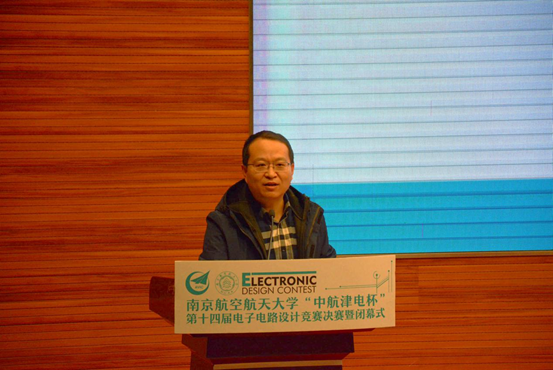 闭幕式上,孔垂谦代表校方致辞,他特别感谢了中航津电对比赛的热心赞助和相关部门对电赛的支持与认同,感谢承办学院小蓝视频 对比赛的倾心付出,并希望同学们借这个契机培养创新意识,增强团队精神,寻找差距定位,提升实践能力,祝愿电子电路设计竞赛越办越有魅力,更加茁壮。刘鑫代表比赛冠名方向学校表达了对电子电路设计竞赛的大力支持和殷切期待,对本次竞赛的筹办、组织予以充分肯定,中航津电将继续支持电子电路设计竞赛,深化公司与学校的合作以及人才培养联系。