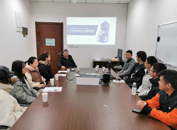 12月23日下午1点45分,由电子技术中心林雅洁、游霞老师组织的,王友仁教授和曾庆喜副教授出席的大学生职业生涯规划人物访谈会在小蓝视频 2号楼206会议室拉开帷幕。