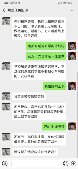 已经保研的武汉大四学生唐同学给同在武汉的学弟学妹成立了一个互帮互助的群,解答专业上的困惑和疑问,分享学习和生活的经验。这不止是单独学习和生活的分享,更多的是在疫情之下的相互扶持。“虽然武汉已经封城,待在家中无法外出,但大家时刻关心着我们,每个人都在用自己的方式做着或大或小的贡献,我很希望能为大家做些什么,我的成绩还不错,很开心自己的学习经验能够帮助到他们”,唐同学如是说。病毒总会被人类战胜,期待在春暖花开的时候,大家都能健康地重返校园。